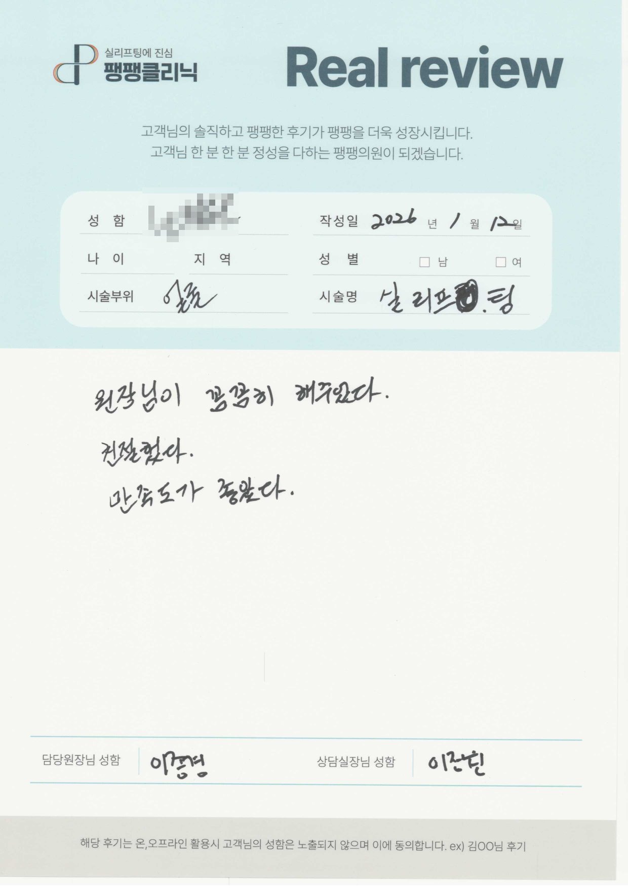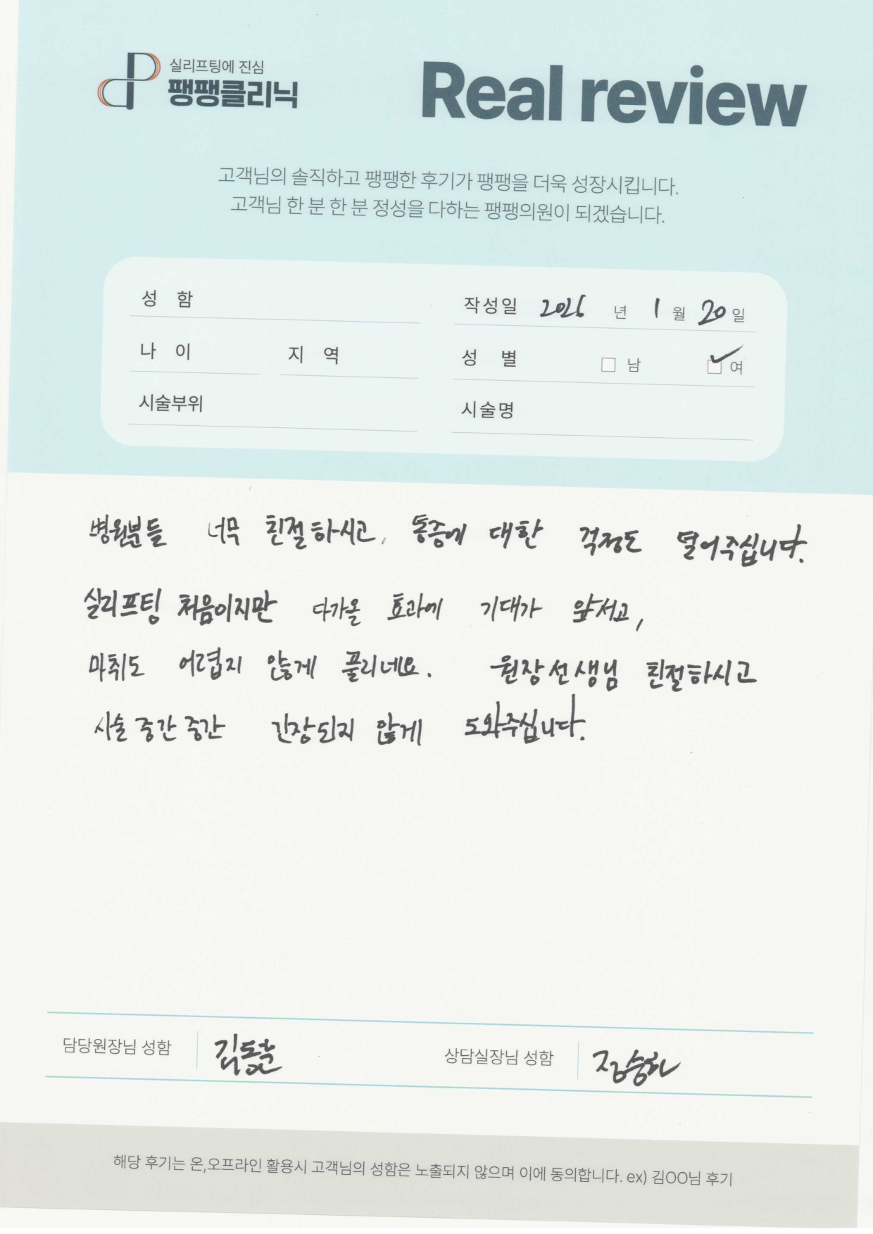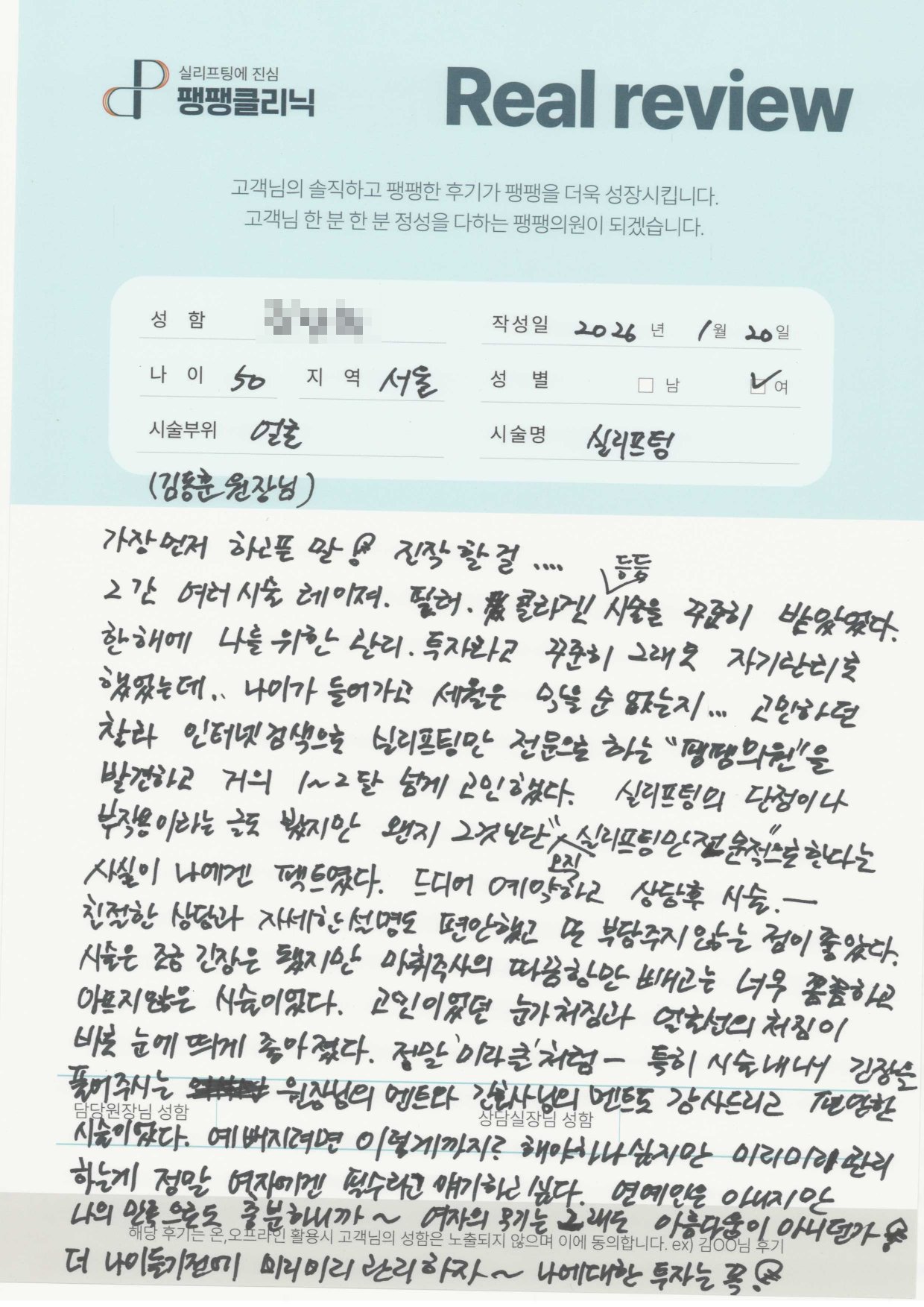 코| 여자 | 40대 | 실리프팅