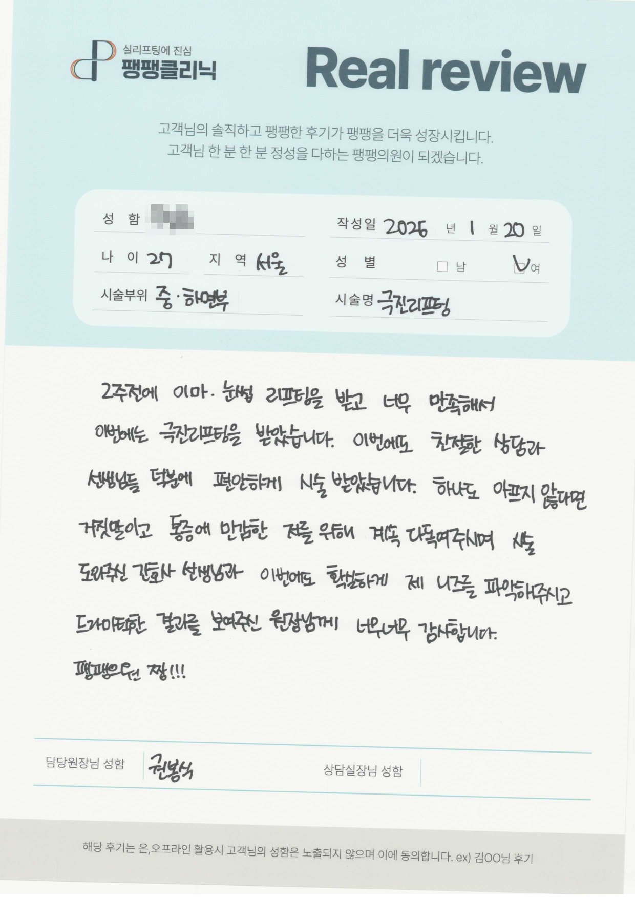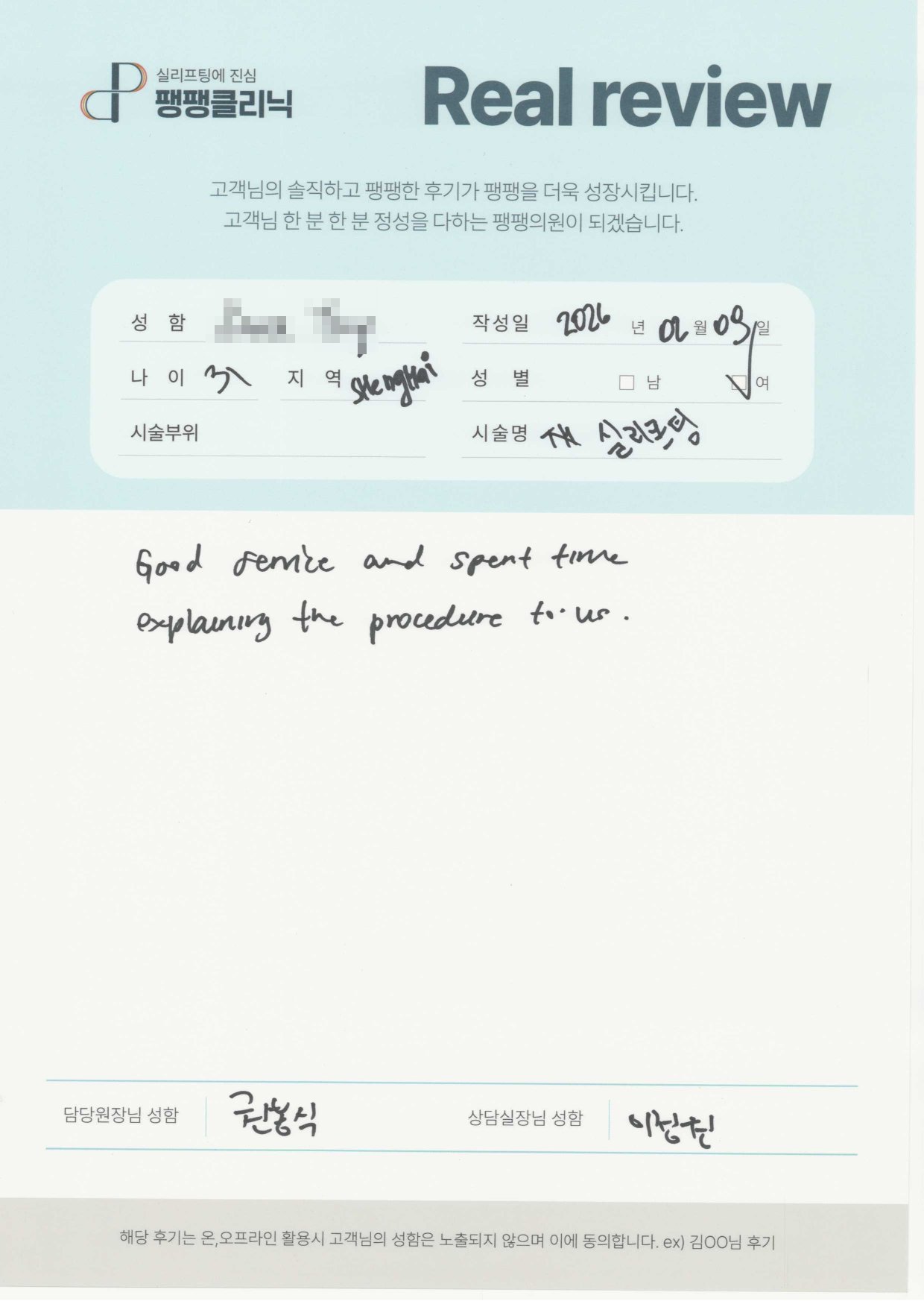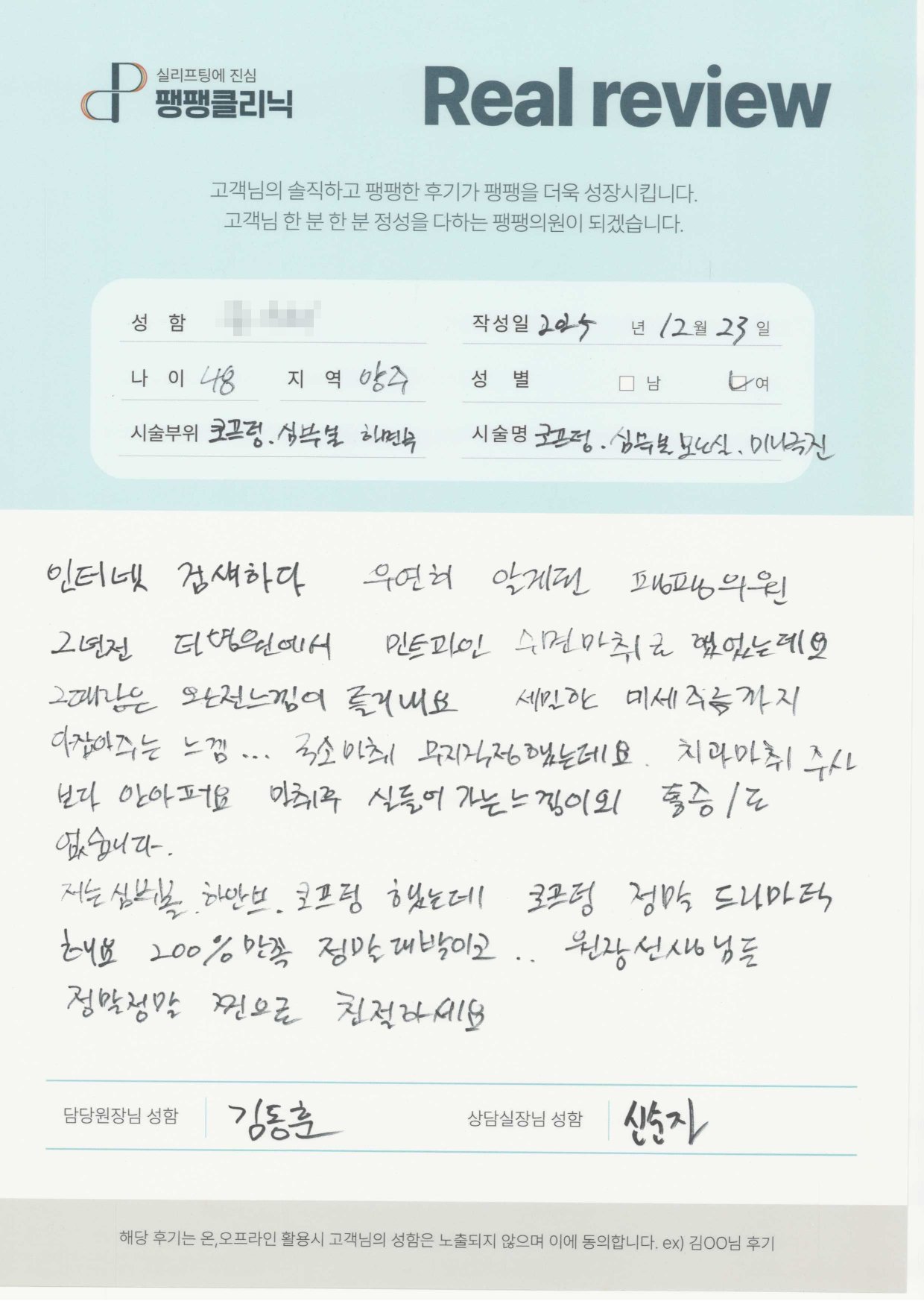 코| 여자 | 40대 | 실리프팅
