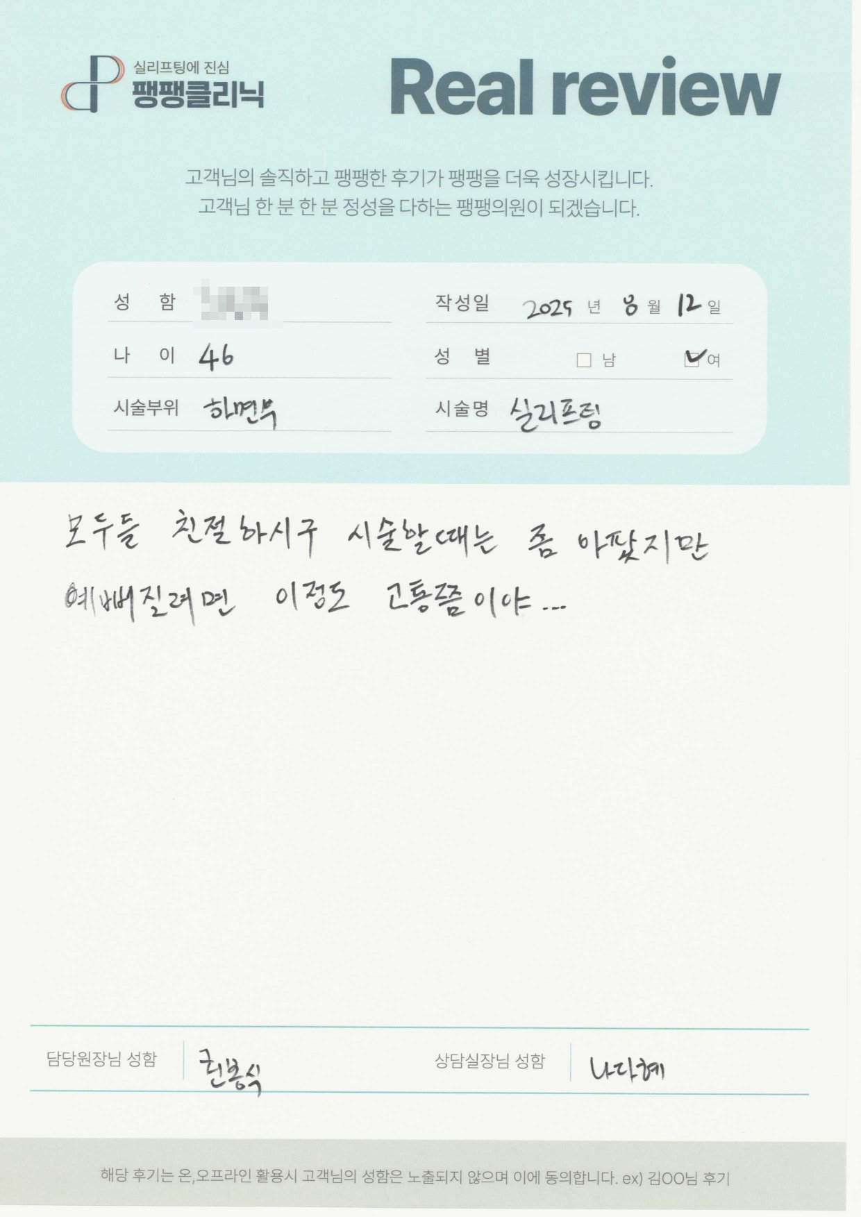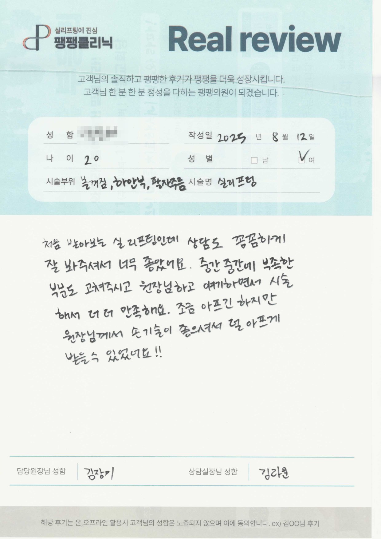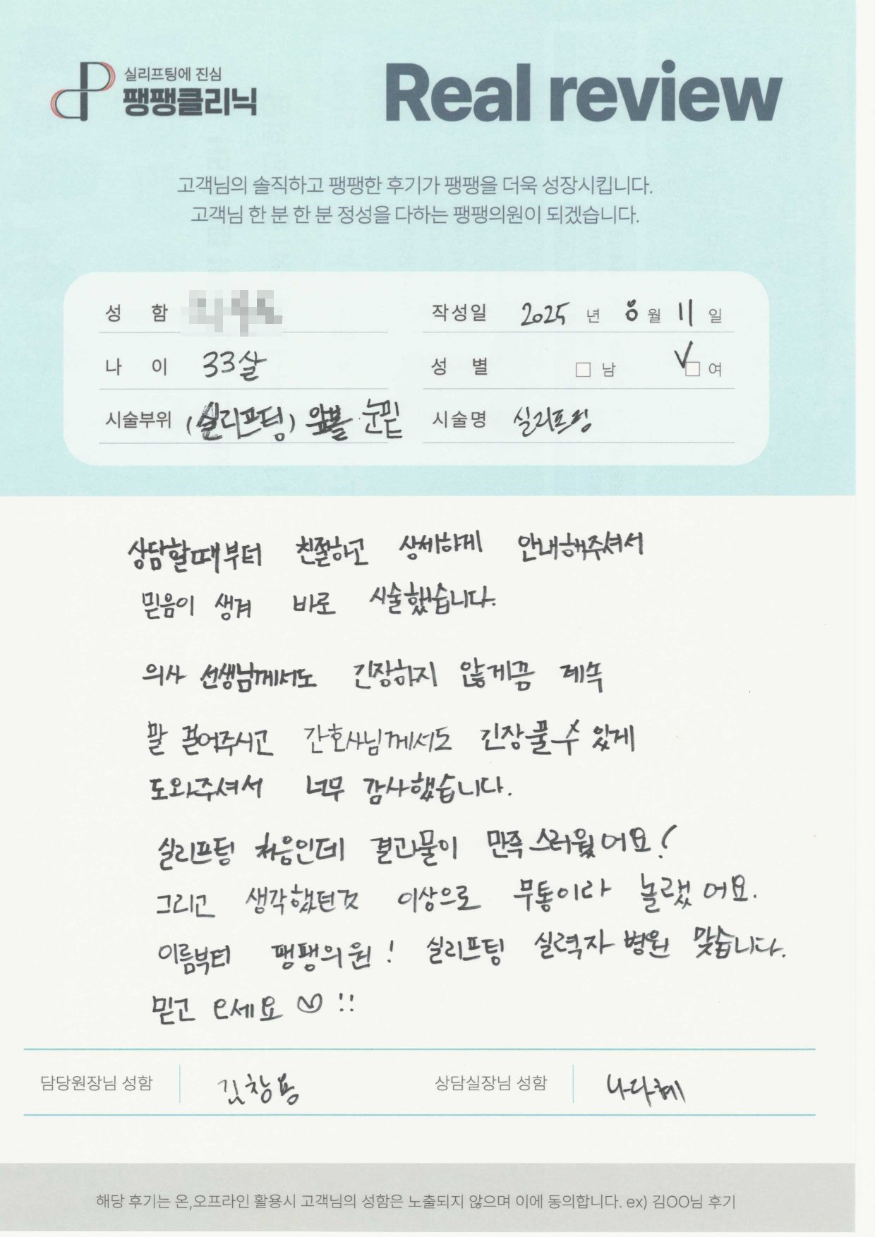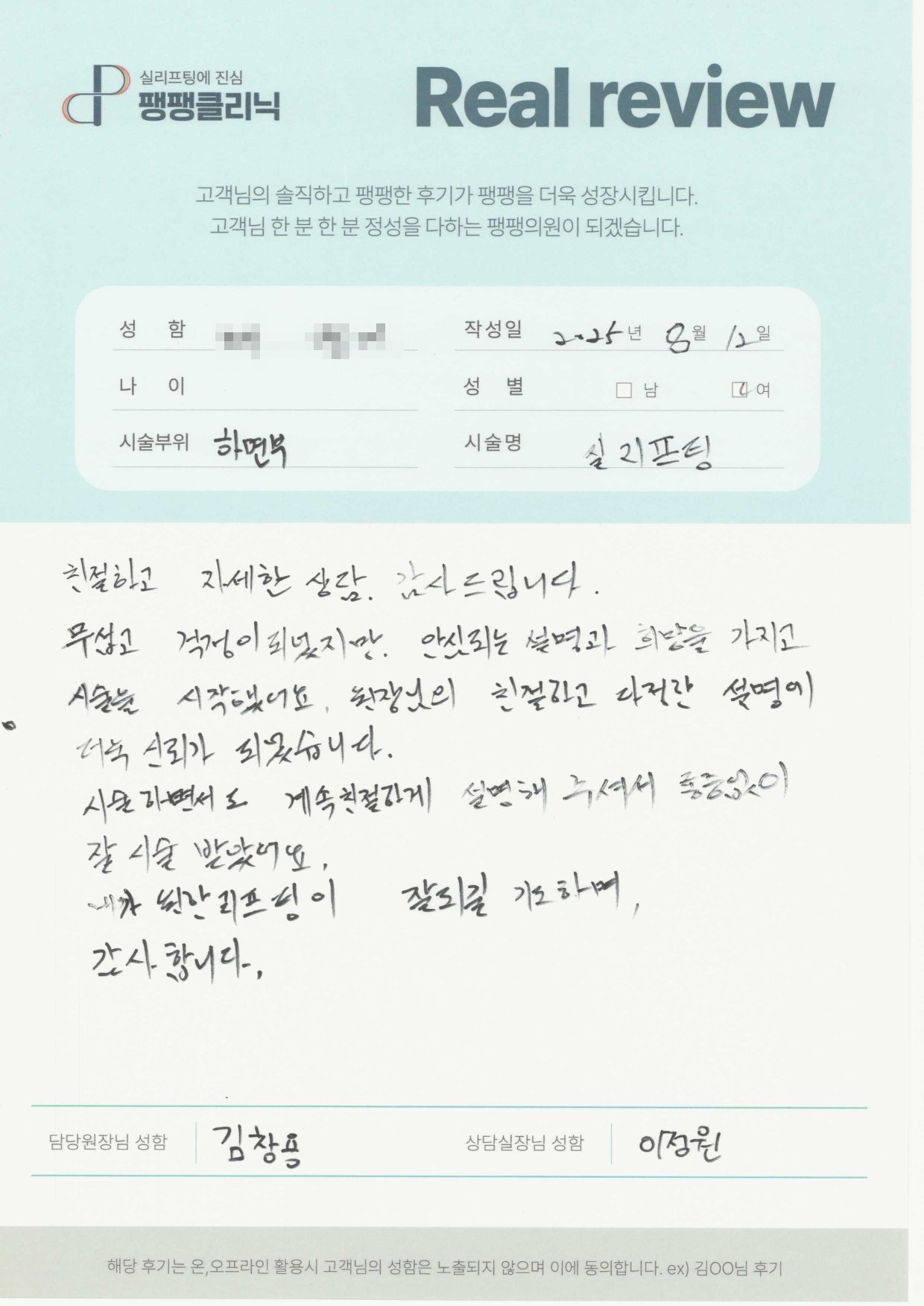 고객님들이 직접 말해주시는 팽팽클리닉의 차이를 확인해보세요.