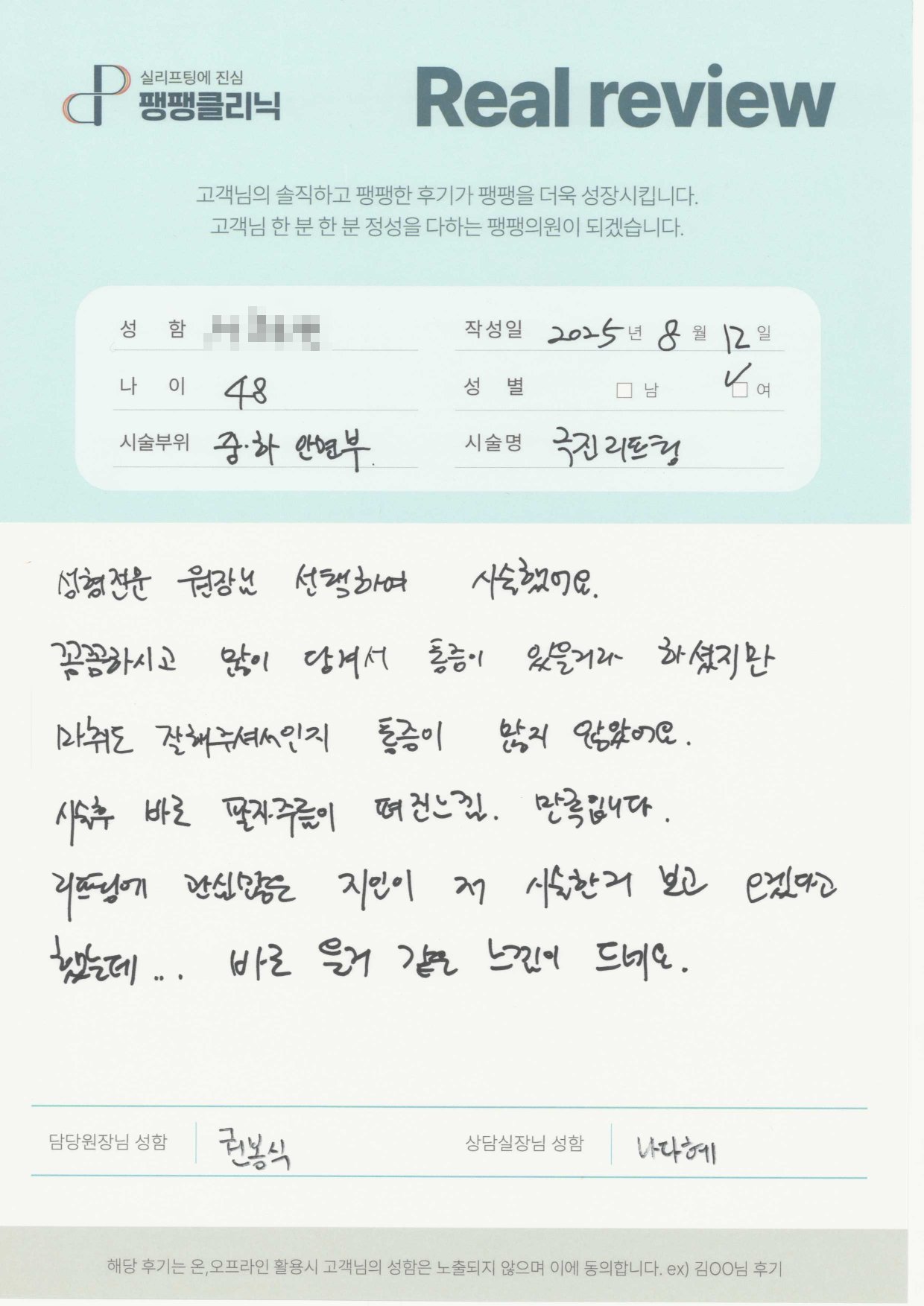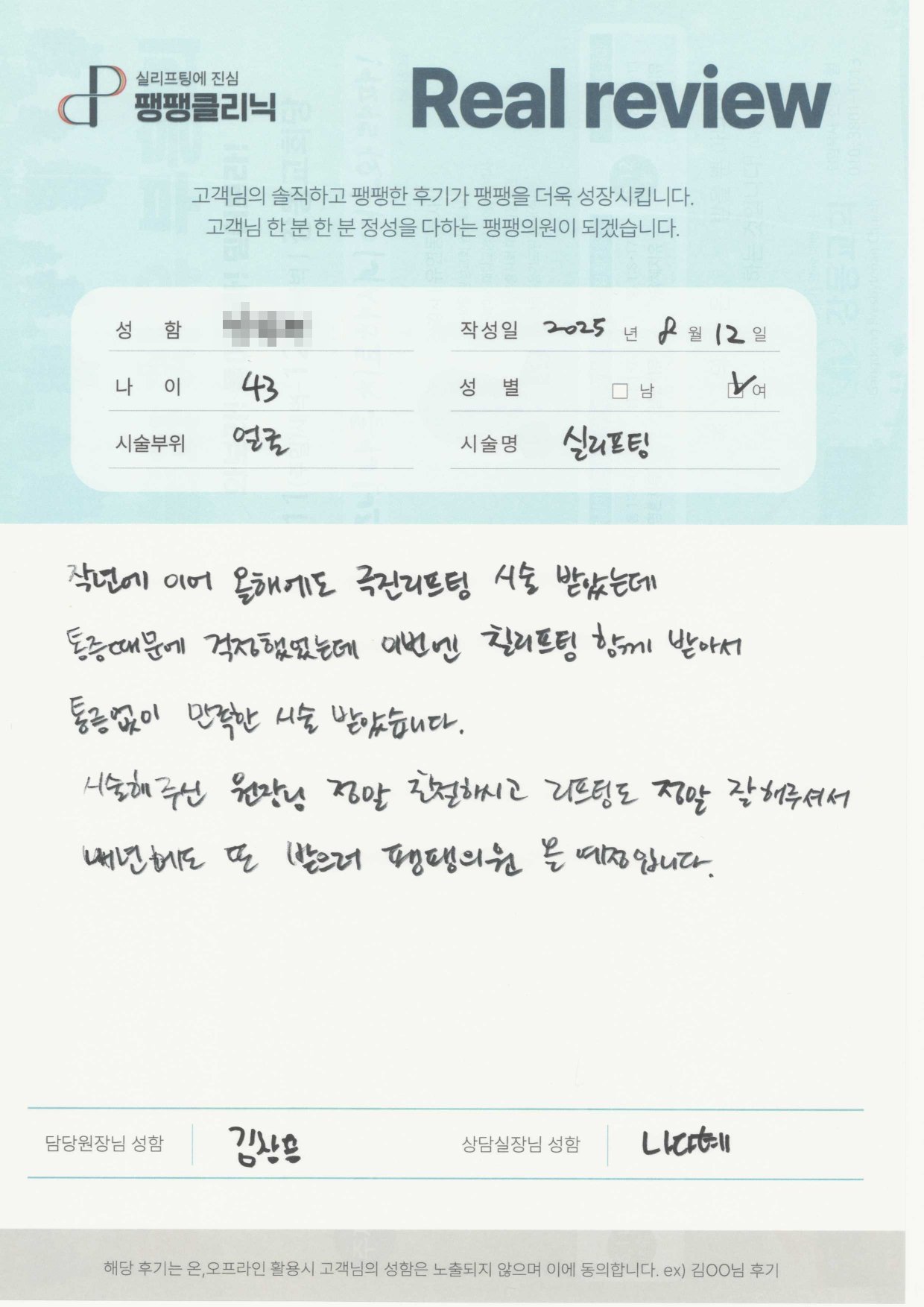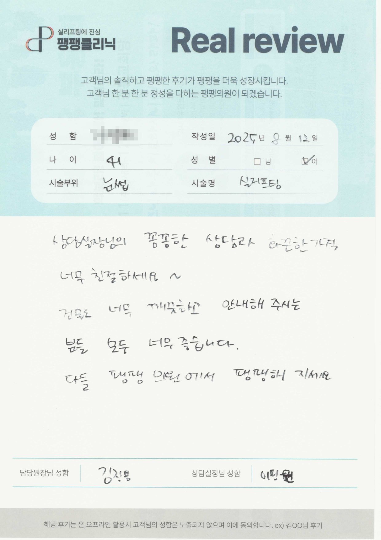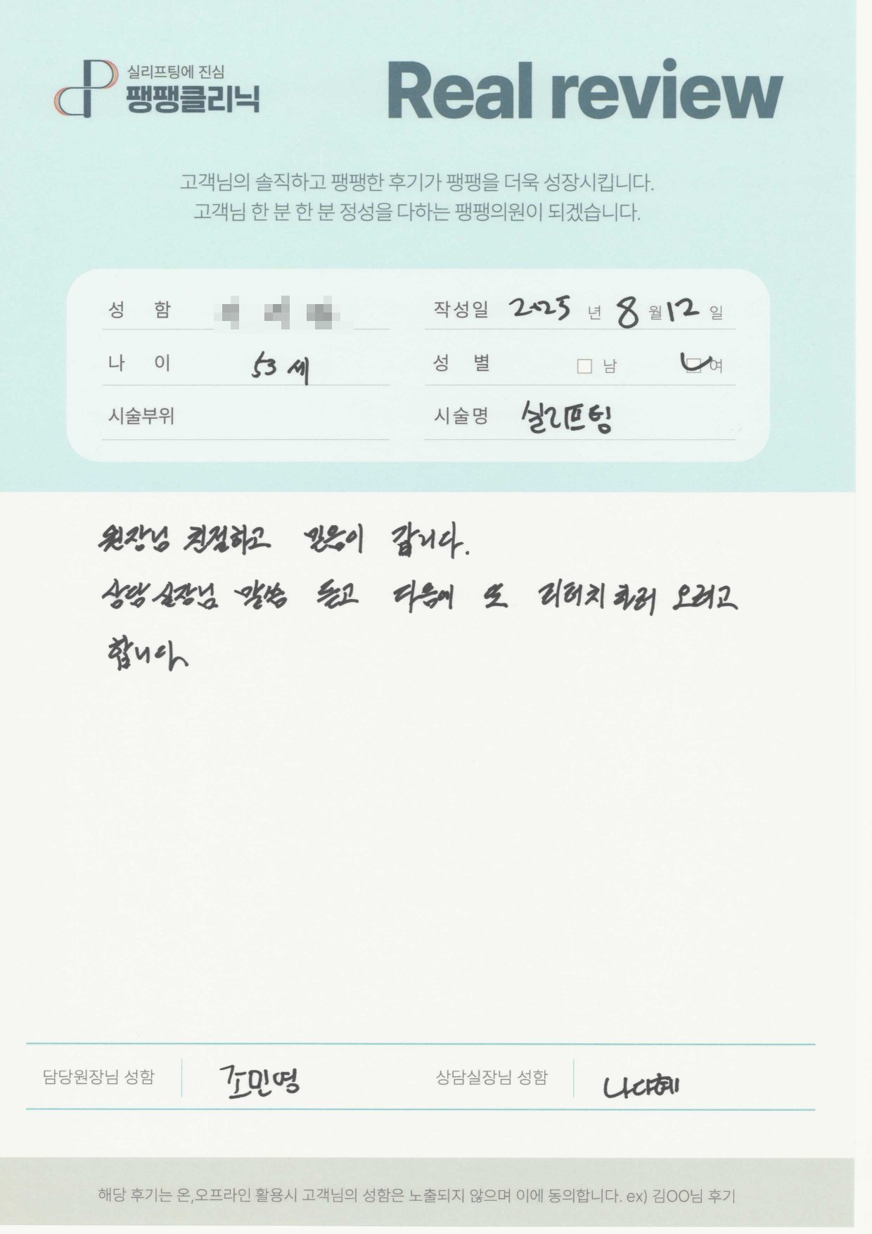 고객님들이 직접 말해주시는 팽팽클리닉의 차이를 확인해보세요.